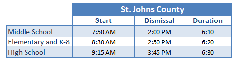 St Johns County Start and Dismissal
